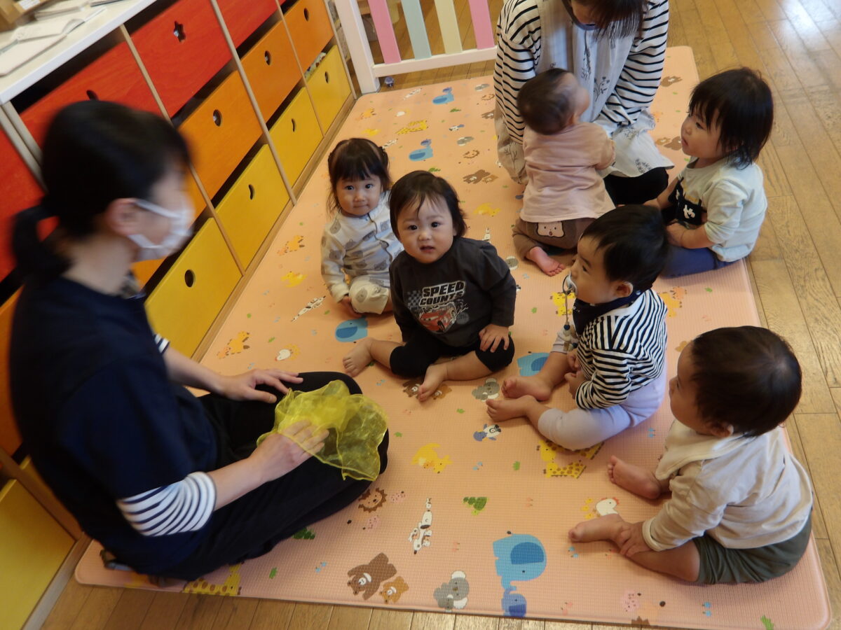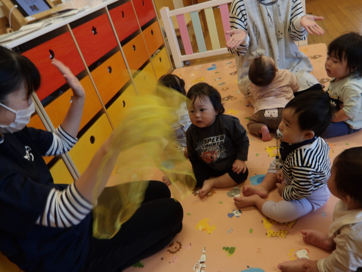 活動日記 DIARY 活動日記 もも組 10月 2025年11月1日 十五夜のお供え物に触れたり見たりと、興味津々な子どもたち。 『おつきさま こんばんは』の絵本の読み聞かせも、楽しみました。 みんな大好き、布遊び! 保育士の歌に合わせて布を動かし、その動きに釘付けになっていました。 古い記事へ 活動日記一覧に戻る