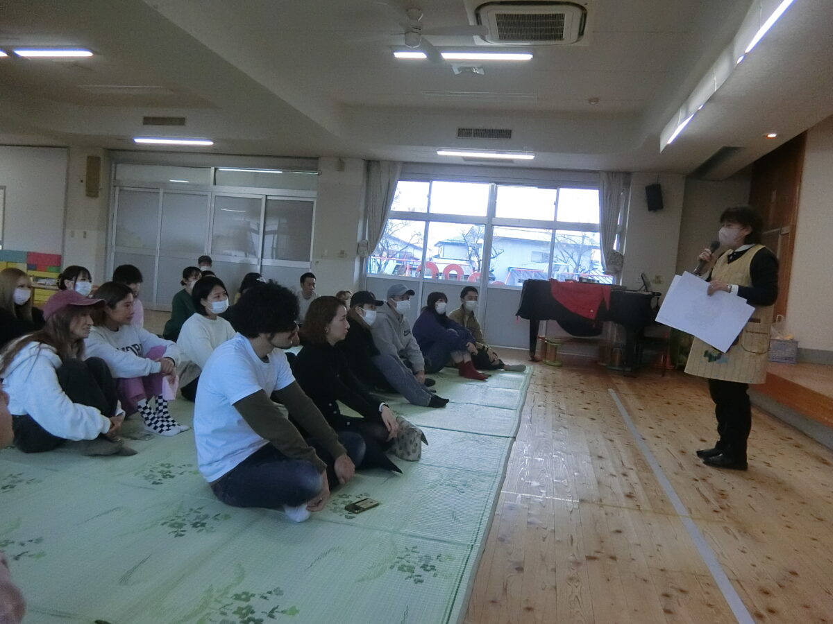 子どもたちのおやつタイムの間に、まずは保護者さんに向けて園長講話を行いました。