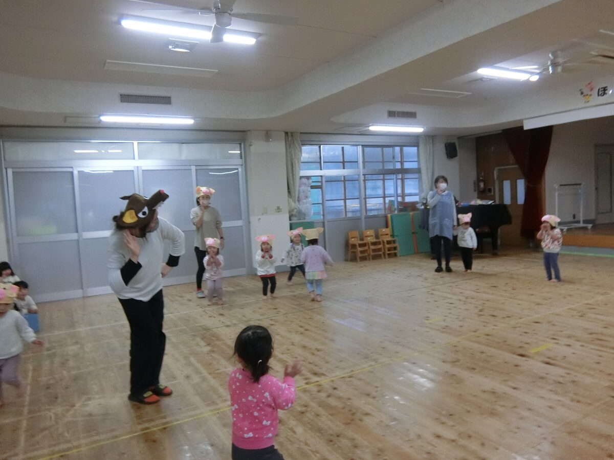 眠っているオオカミさんが起きるまで、ドキドキわくわく!オオカミさんが動き出すと、大きな声で歓声をあげ全力で逃げ回っています。