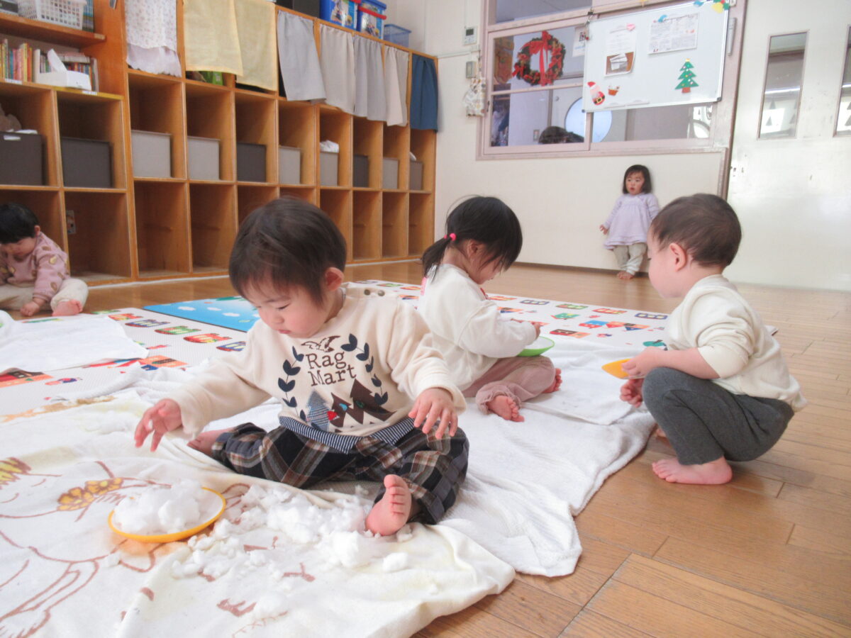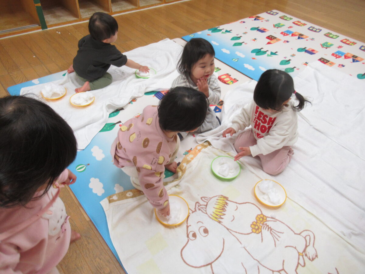活動日記 DIARY 活動日記 れんげ組 12月 2026年1月2日 たくさん雪が降った日…。 お皿に雪を集め、触って遊んでみました! 「冷た~い!!」という表情で触ってみたり、ギュッと握ってみたり、お皿にたくさんのせておままごとのようにした子もいました。 それぞれに雪の感触を楽しんでいたれんげ組さんでした♪ 新しい記事へ古い記事へ 活動日記一覧に戻る