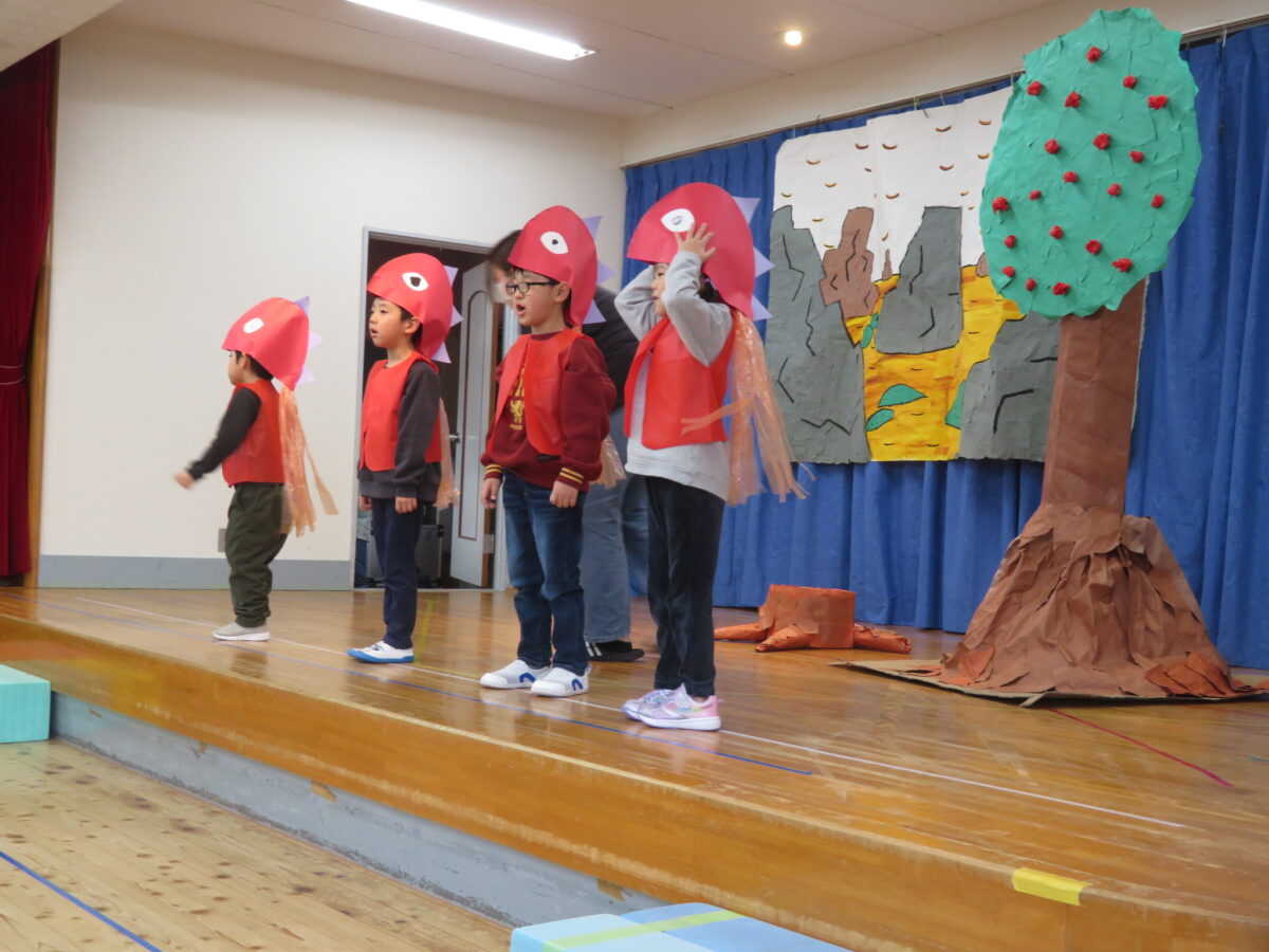 活動日記 DIARY 活動日記 ひまわり組 12月 2026年1月7日 リレー、鬼ごっこ、体を動かすことが大好きなひまわり組です。 友だち同士でルールを決めたり、確認したりしながら遊んでいます。 誕生日会で、発表会で取り組んだ劇をみんなにも披露しました! 劇は、絵本『あいをください』をクラスのみんなで表現しました。 力よりも大切なものを、表現できましたね。 新しい記事へ古い記事へ 活動日記一覧に戻る