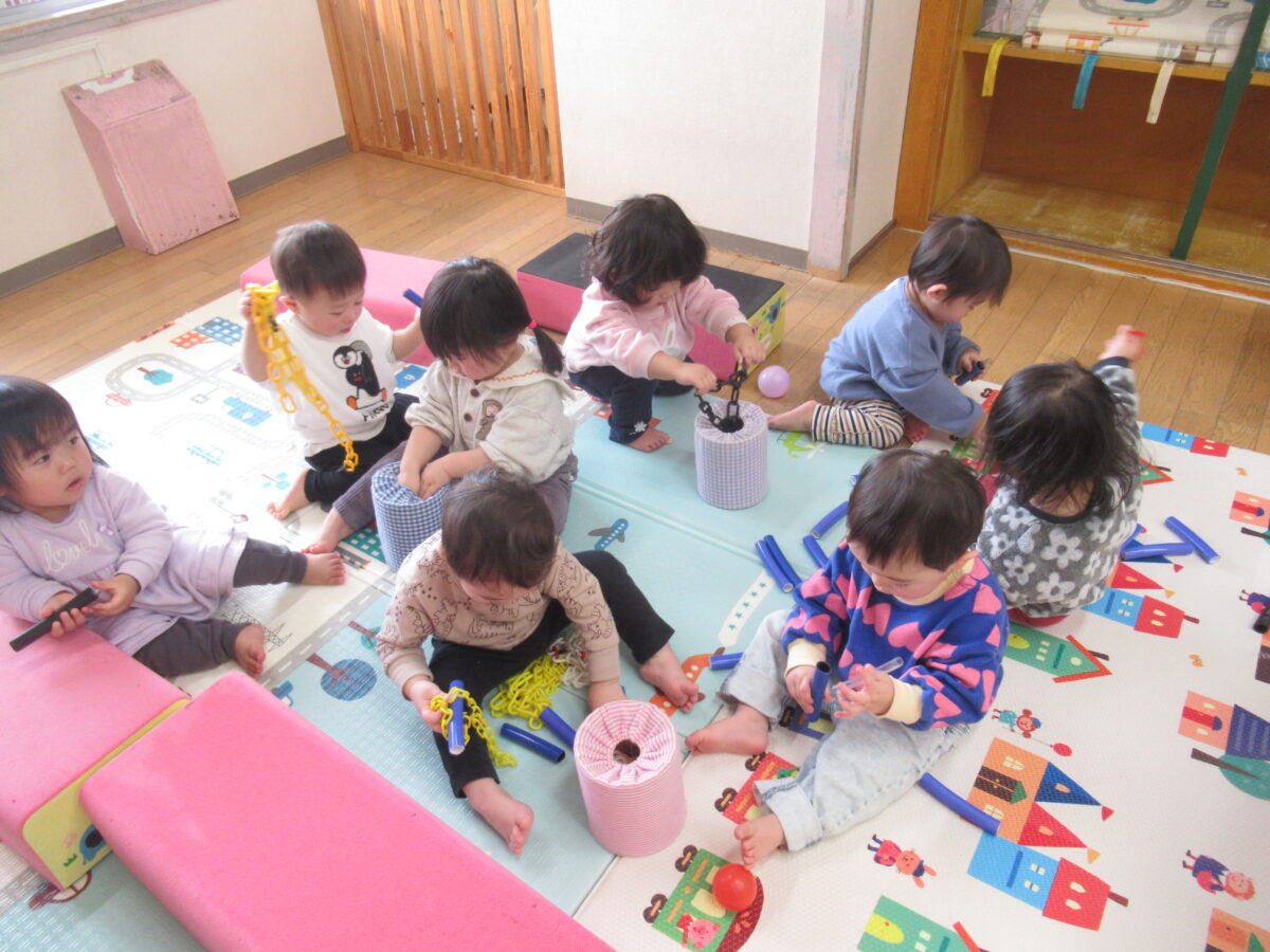 活動日記 DIARY 活動日記 れんげ組 1月 2026年2月2日 伝統行事のだんごさし。 茹で上がった色とりどりのだんごをみずきの木に刺したり、お飾りを飾ったりと、伝統に触れることができました。 お友だちと同じあそびをする楽しさが味わえるようになってきたり、一つの遊びに集中してじっくりと遊ぶ姿が増えてきました。 み~んな大好き、絵本の読み聞かせ。 ”これが良い!”と指をさし、子どもたちがリクエストしてくれることもあります。 古い記事へ 活動日記一覧に戻る