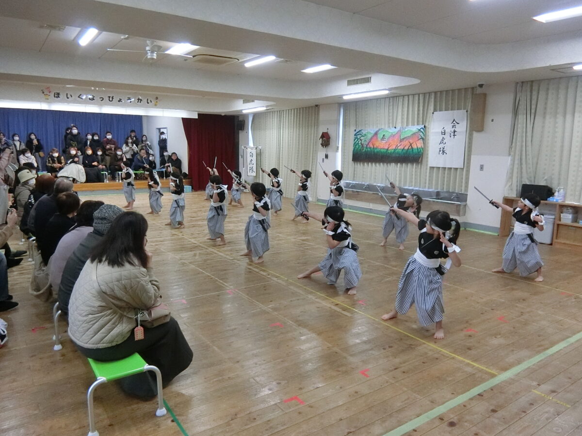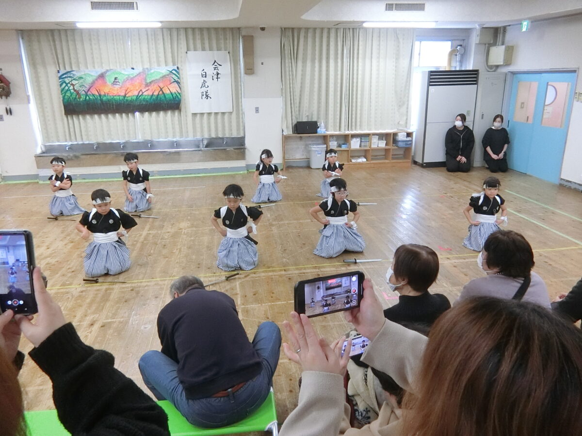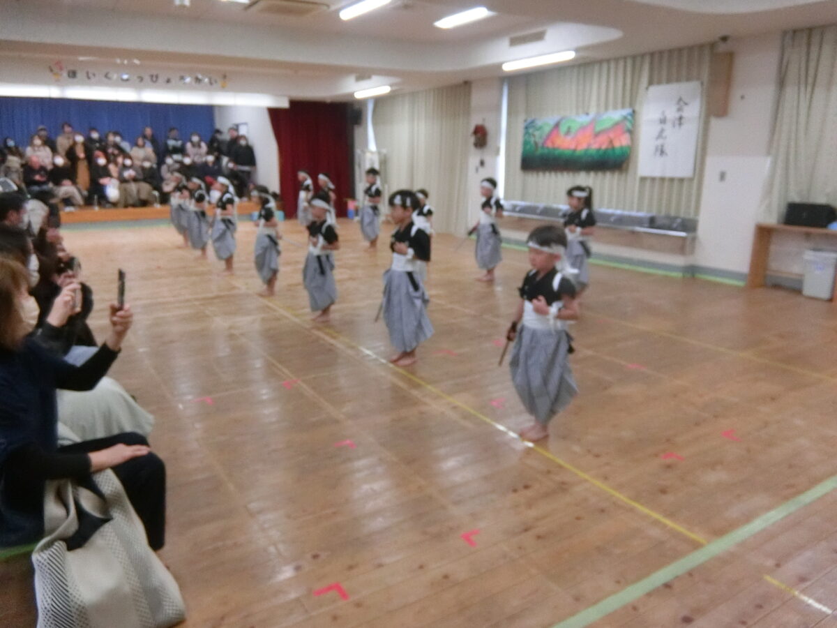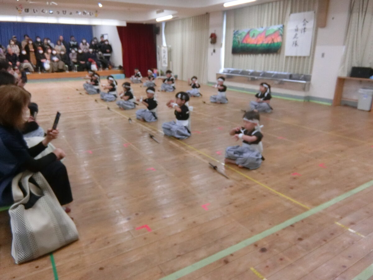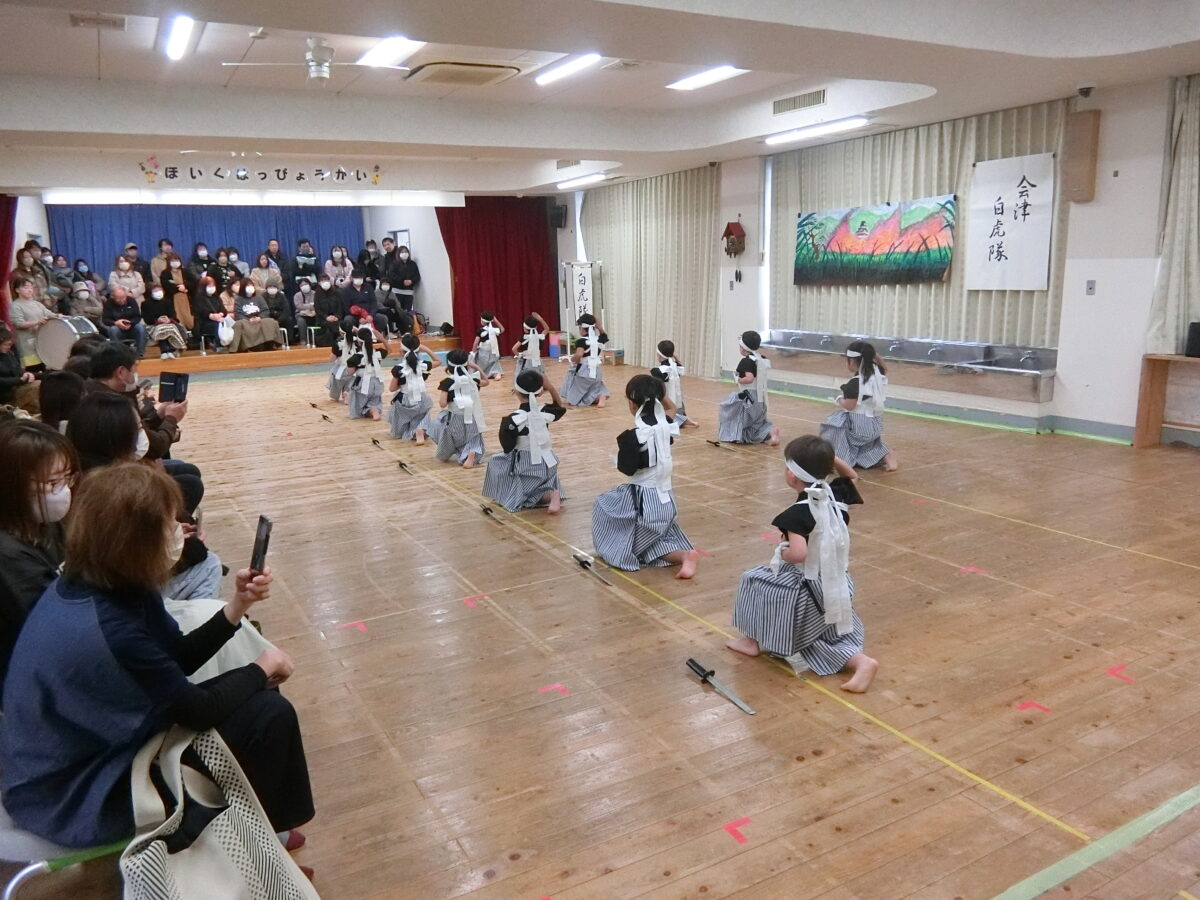 ひまわり組さんは保育園最後の発表会。演舞「白虎隊」では袴を着て、きりっと引き締まった表情がとても素敵で、年長さんらしい姿に感動しました。保護者の方や、おじいちゃん、おばあちゃんの目にも、キラリと光るものがあふれていました。
