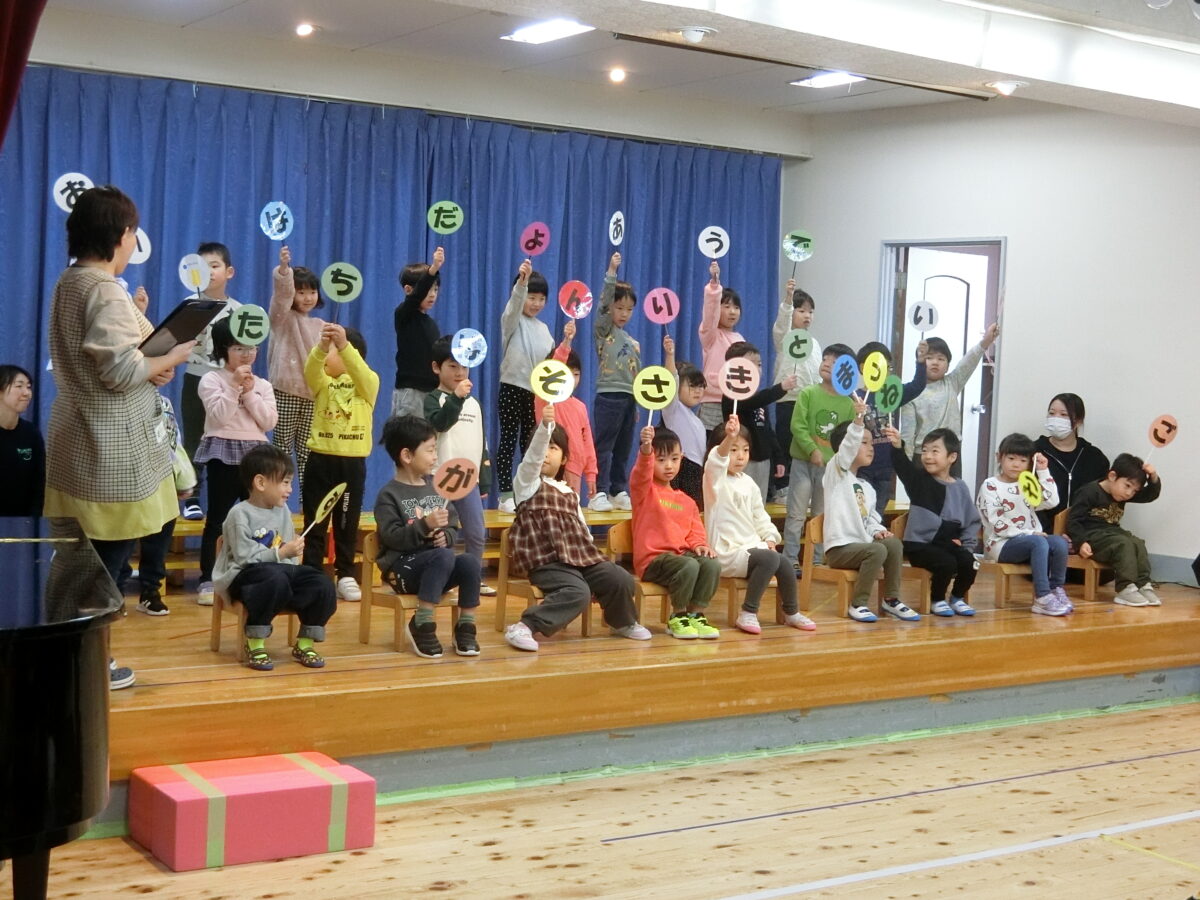 「ひらがなひろば」では、日頃使っている言葉の大切さを、担任と子どもたちの掛け合いで伝えてくれました。