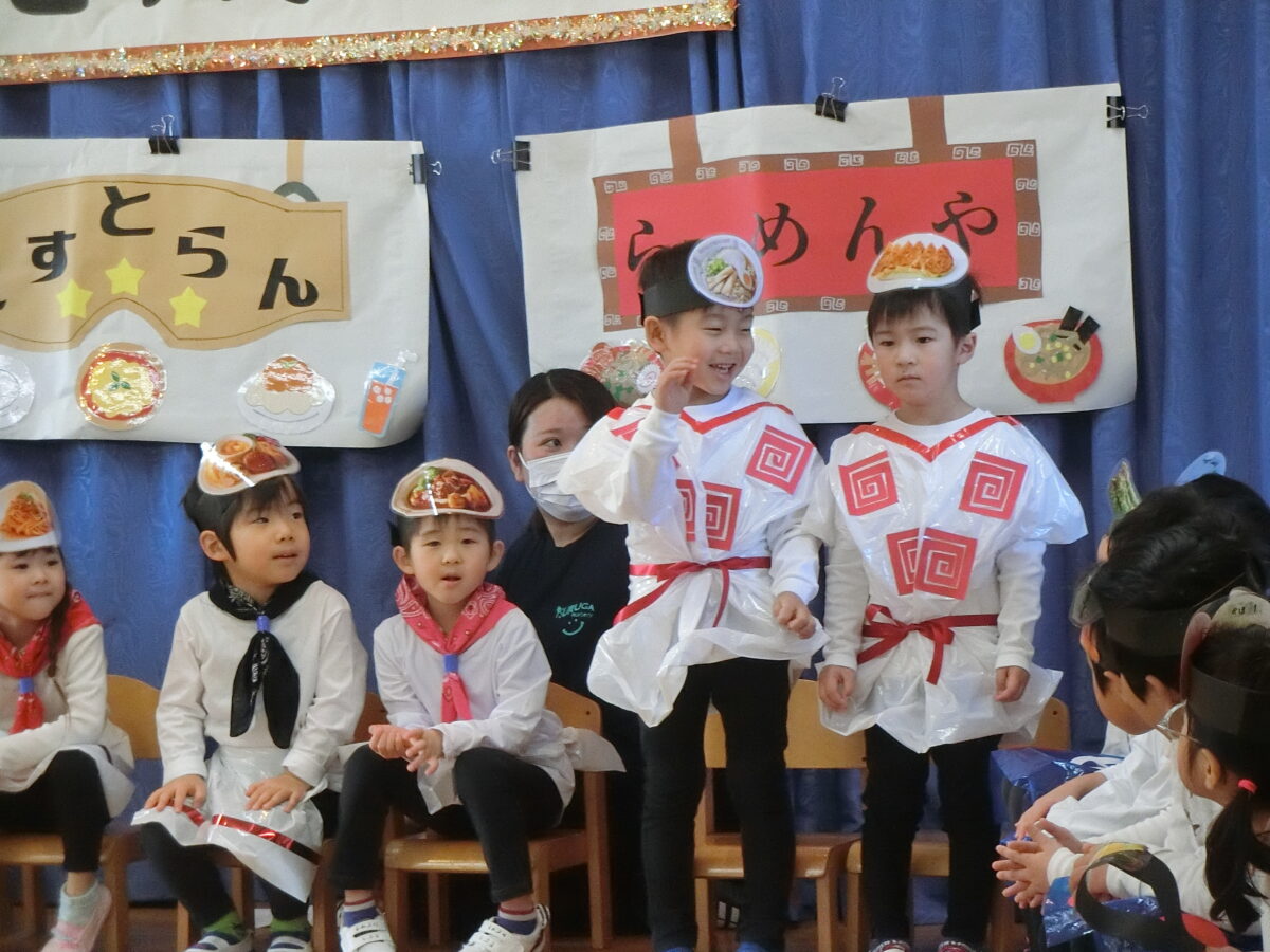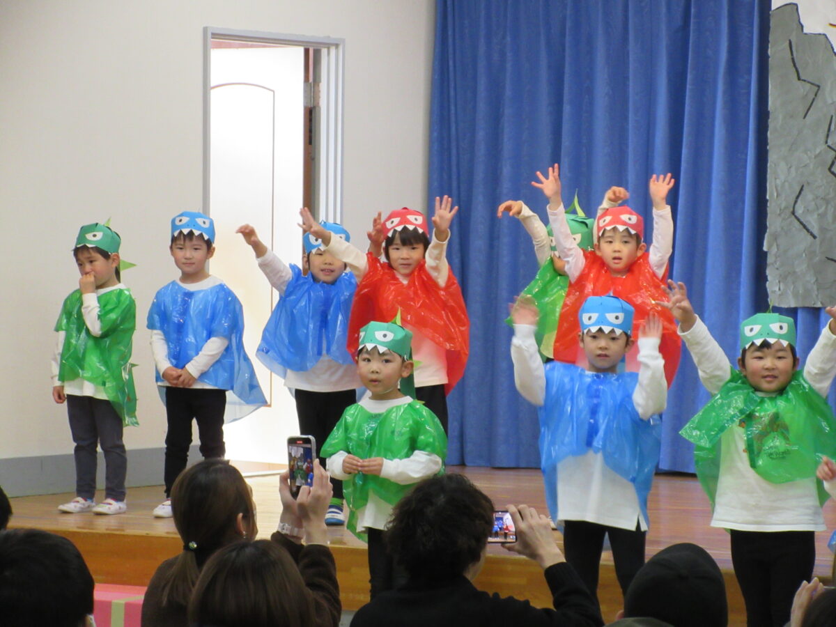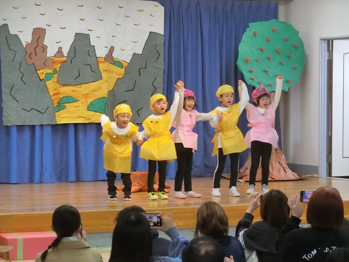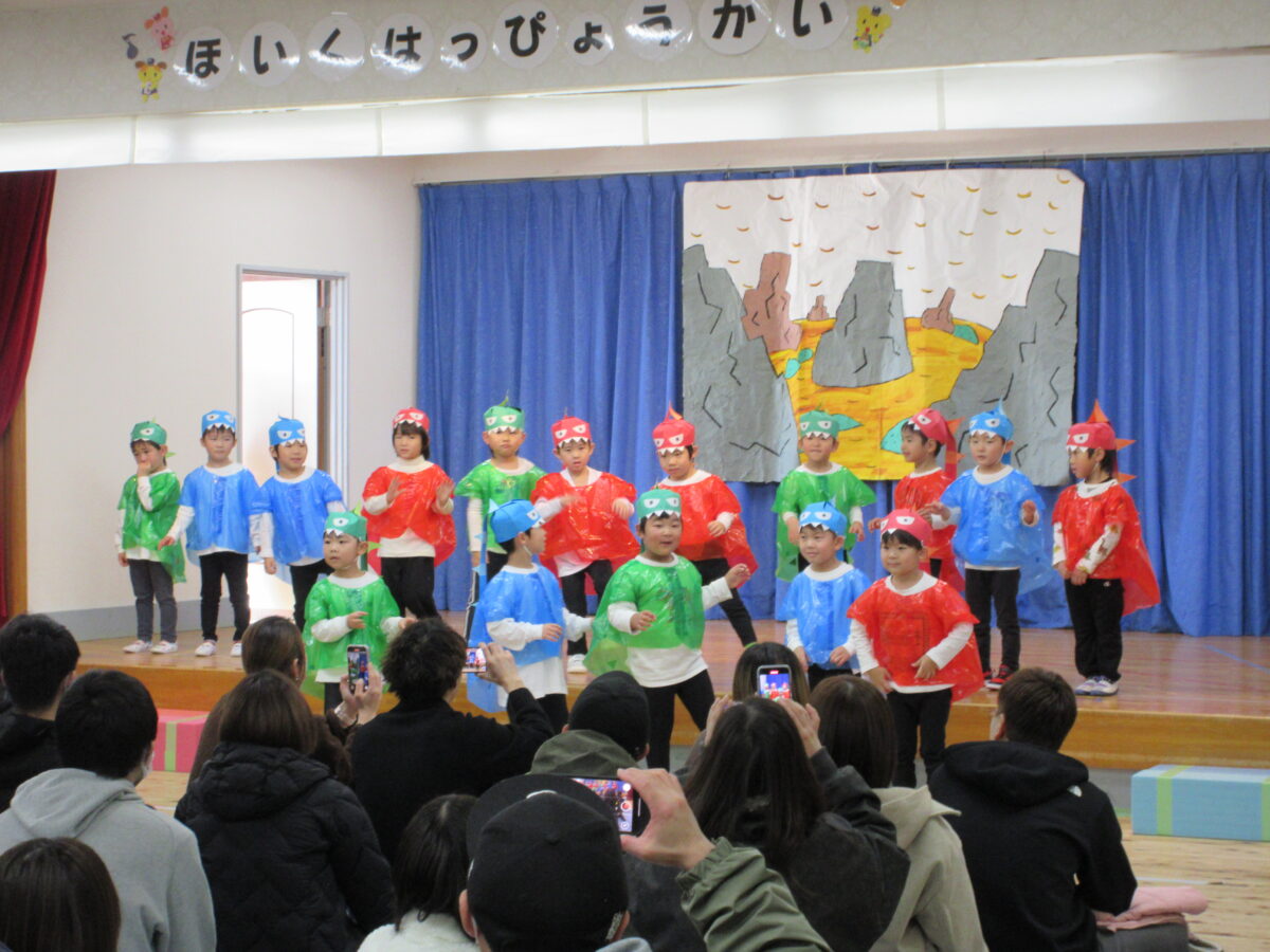 各クラス、4月からの保育生活の中で楽しかったこと、学んだことなどをそれぞれのクラス工夫をし、笑いあり、涙ありの素敵な発表会となりました。